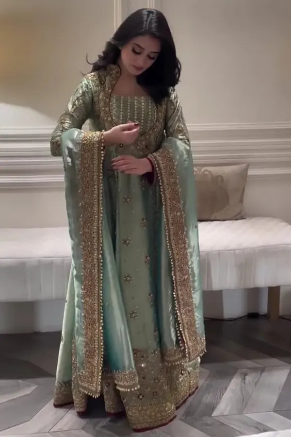 • Dupatta: Masoori tissue dupatta with 3-sided embroidered borders and adda work on maatha patti