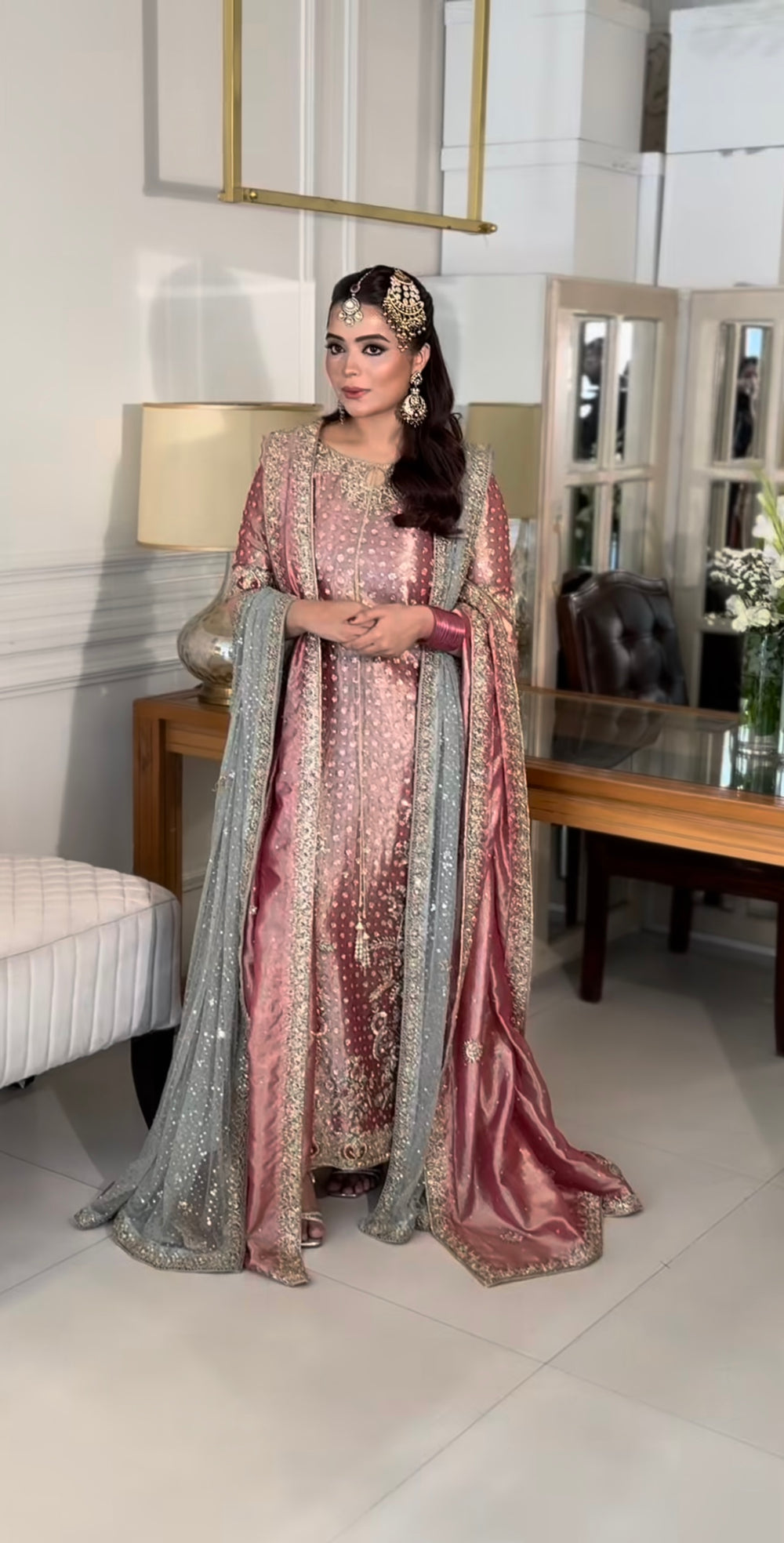 Introducing our Iqra Ensemble, a timeless Haris Shakeel–inspired creation designed for women who appreciate classic luxury with a modern touch. This exquisite outfit features a beautifully embellished shirt adorned with delicate embroidery and subtle detailing, paired with a graceful silhouette that flatters effortlessly. The ensemble is completed with two contrasting dupattas—one richly finished to add depth and drama, and the other light and elegant for a softer, ethereal look. Crafted in sophisticated hues, this outfit is perfect for weddings, formal events, festive occasions, and intimate celebrations. 4-Piece Article Includes: • Hand Embellished Shirt • Coordinated Trouser • Dupatta 1 (Embellished & Embroidered) • Dupatta 2 (Embellished & Embroidered) A refined choice for those seeking luxury wear inspired by high-end designer aesthetics.